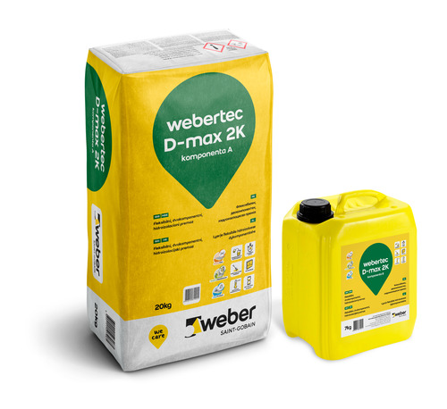 webertec D-max 2K je dvokomponentni, paropropusni i fleksibilni polimer-cementni hidroizolacijski premaz. Sastoji se od suhe i tekuće komponente. Koristi se za zaštitu građevinskih objekata od utjecaja vode i vlage, za unutarnje i vanjske podloge, za cementne i podloge od opeke. Preporučena mjesta ugradnje su kupaonice, kuhinje, terase, balkoni, postolja, bazeni i rezervoari. Također je prikladan za korištenje u sustavima s podnim grijanje.